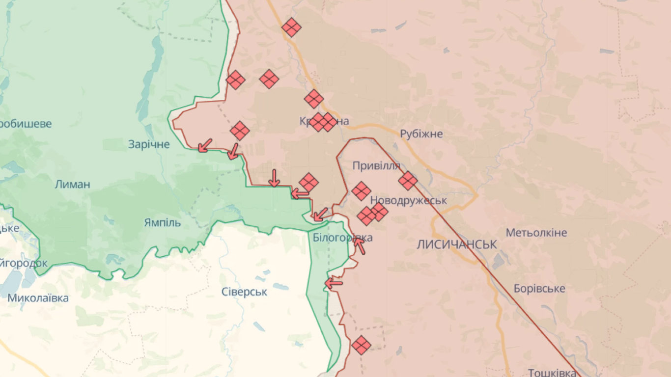 - Білої Гори, Андріївки та Кліщіївки на Бахмутському напрямку Донецької області;