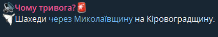 Оновлено 22:50. Безпілотники типу Shahed рухаються через Миколаївську область до Кіровоградської області.