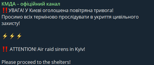 Оновлено 23:05. Повітряну тривогу оголосили у Київській області.