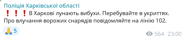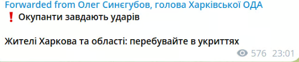 Наразі російські війська здійснюють обстріл Харкова. Правоохоронці та міська влада закликають мирних мешканців міста залишатися в укриттях.