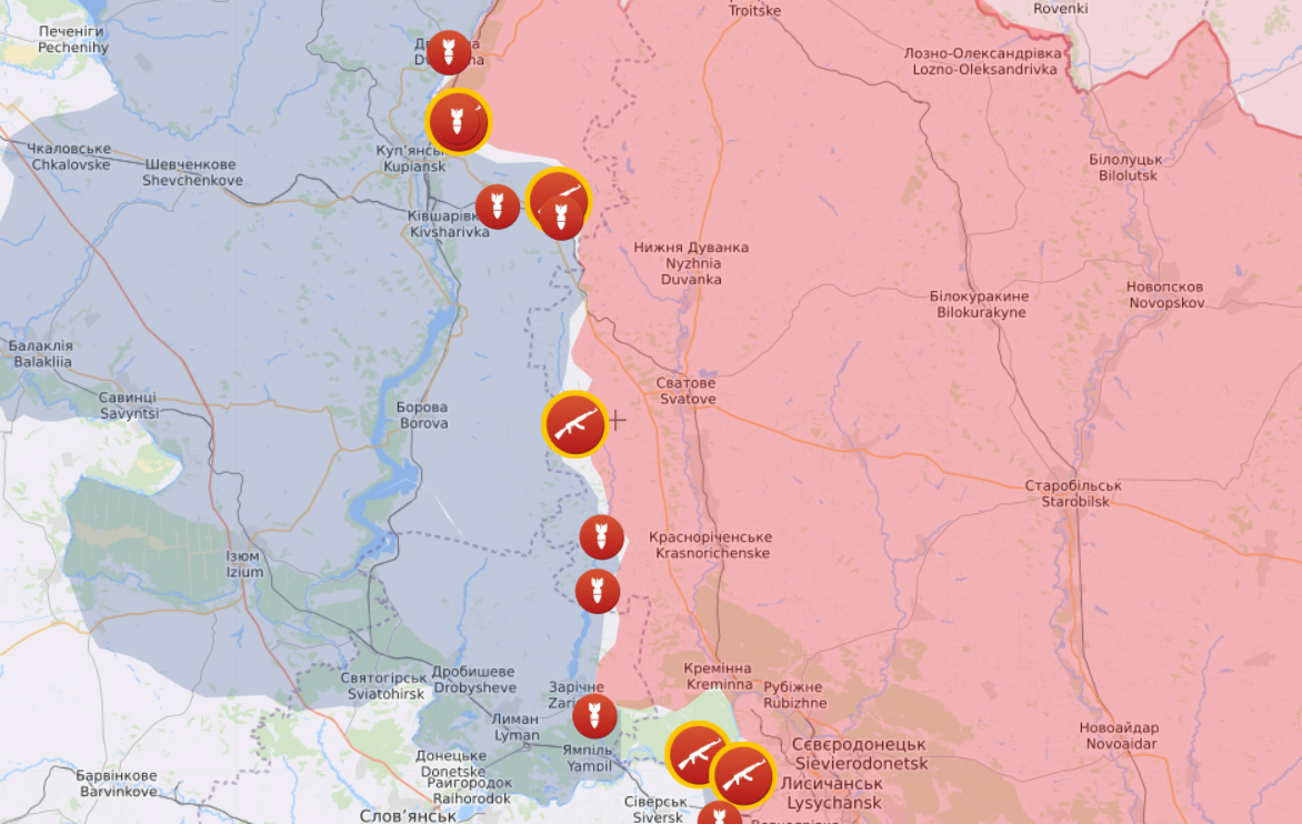 - Сватовский — оккупанты давят возле Орлянки и южнее Дибровы, продолжаются боевые действия возле Райгородки и Макеевки.