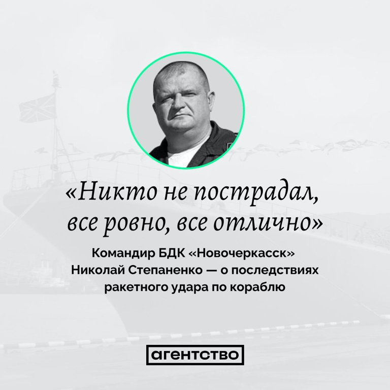 Также журналисты вышли на связь с женой командира "Новочеркасска" Николая Степаненко. На вопрос, находился ли он при ударе на корабле, женщина выдвинула неуверенное предположение и уточнила, что сегодня еще не общалась с мужчиной.