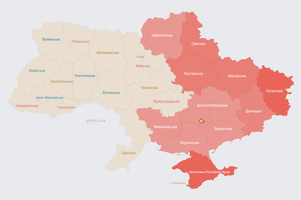 Воздушная тревога сейчас 21 ноября