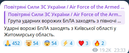 Обновлено 23:37. Воздушные силы предупреждают, что беспилотники пересекают границу Житомирской области.