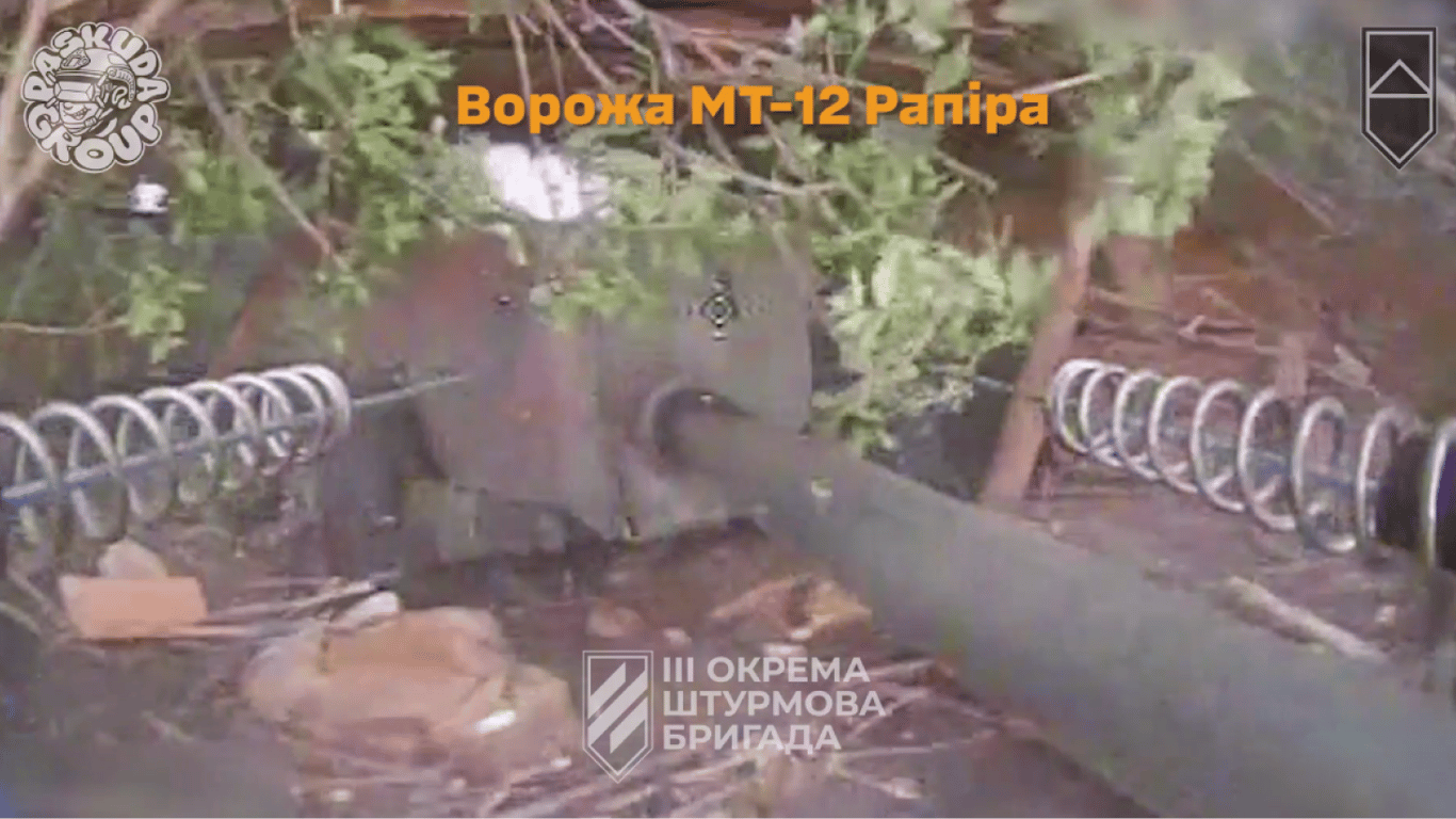 Вражеская пушка "Рапира" на прицеле дрона. Фото: скриншот