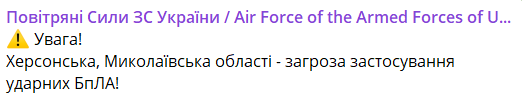 Как сообщается, иранские БпЛА могут двигаться в Херсонскую и Николаевскую области.
