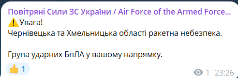 Обновлено 23:27. Военные предупреждают жителей Черновецкой и Хмельницкой областей о ракетной опасности из-за движения БпЛА в их направлении.