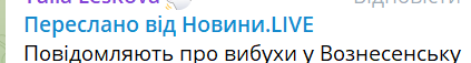 00:23. Мониторинговые каналы сообщили о взрывах в Вознесенске.