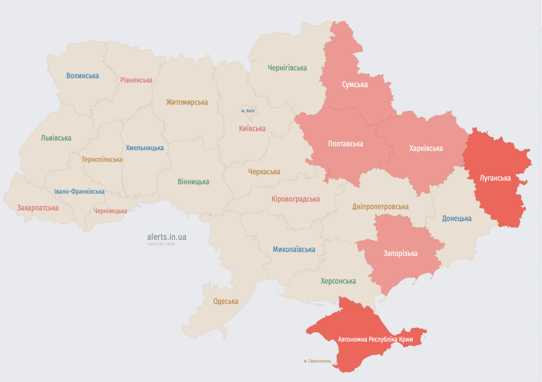 Воздушная тревога в Украине 16 января