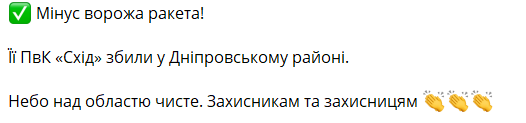 Напомним, что не так давно в Днепре раздались взрывы, в результате которых ПВО охотилось на российскую ракету.