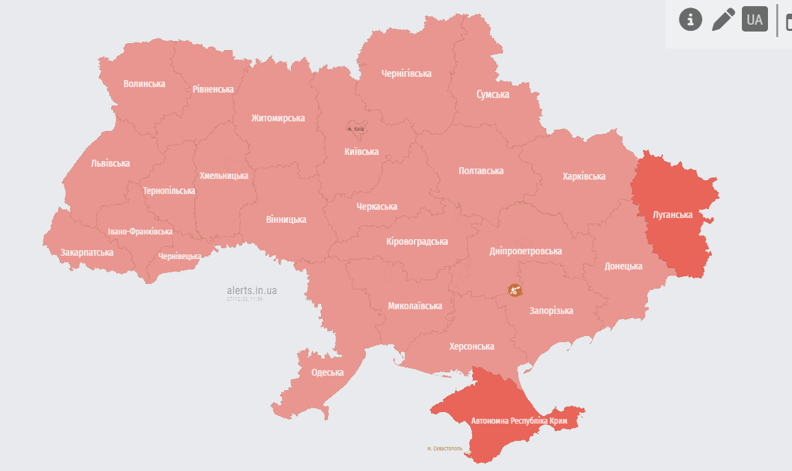 Повітряна тривога в Україні 27 грудня